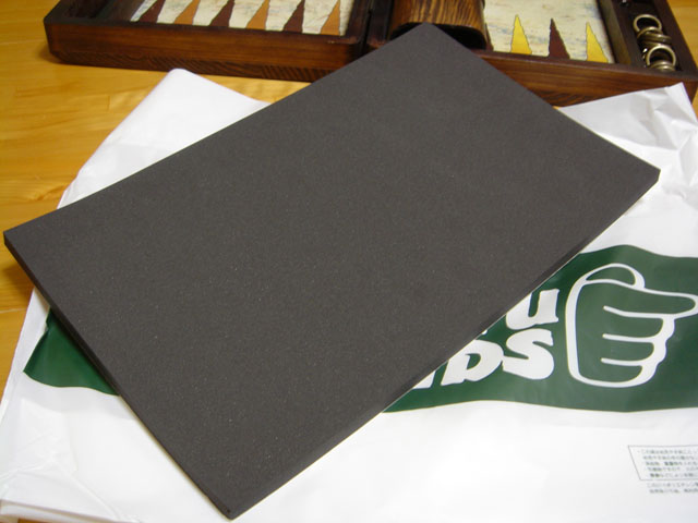 そんなわけで、会社帰りに東急ハンズに寄って、発泡ゴムシート(1cm 厚)を買ってきました。
