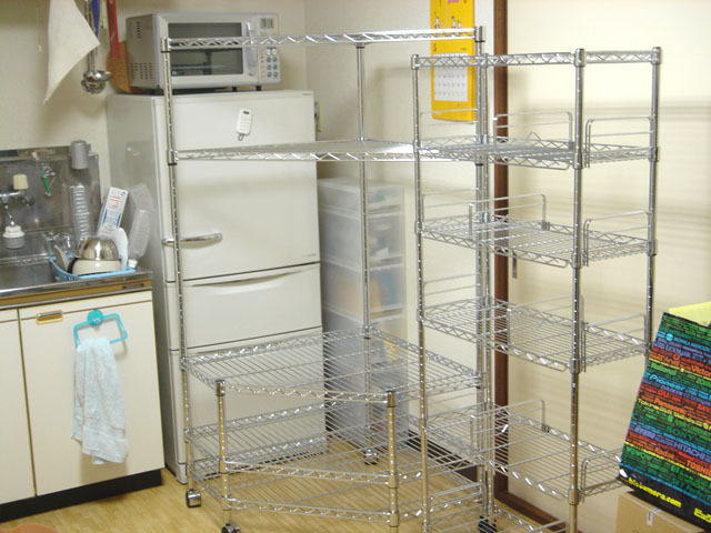 で、届いたメタルシェルフをがきーんがきーんと組み立てること数時間。組み上げよりも後片付けの方に時間が取られる過剰包装に閉口しつつ、完成。