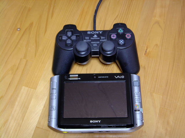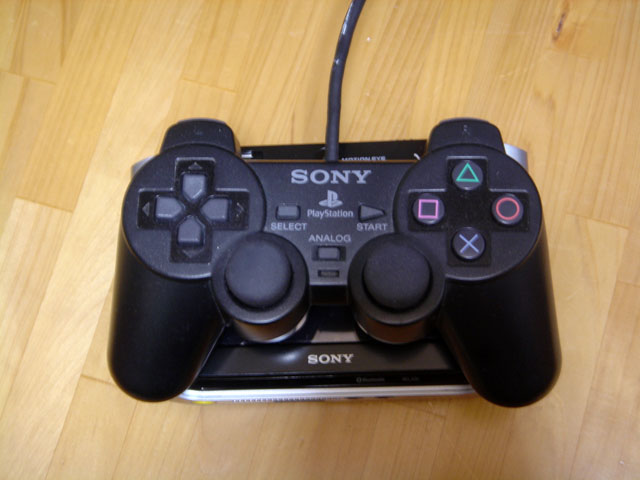 PlayStation2 のコントローラをなんとなく比較用に置いてみましたが、ほとんど同じくらいのサイズです。