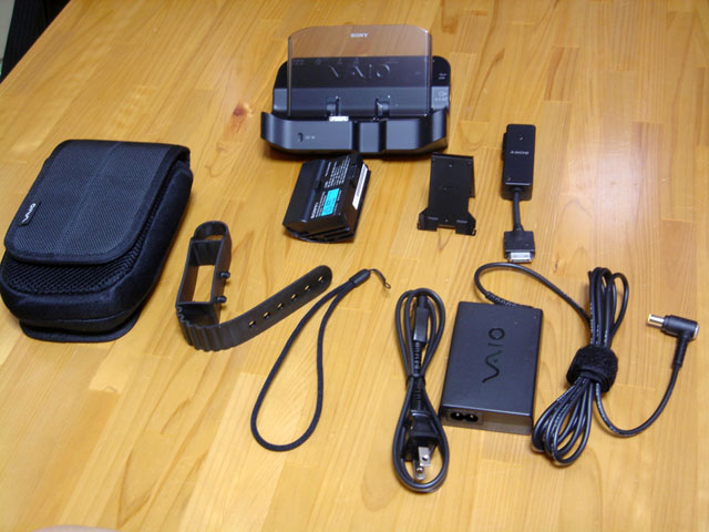 中央上段がポートリプリケータとノーマルサイズのバッテリー。下段がストラップ。